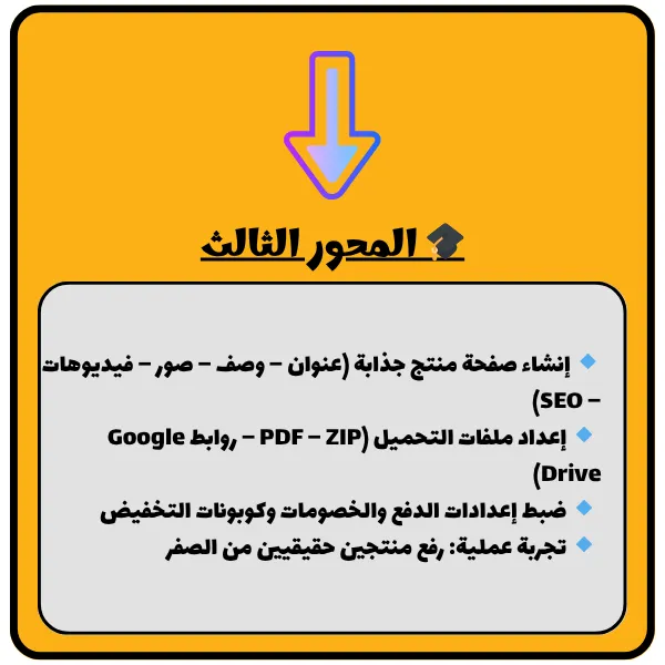 من بعد ما تكمل الدورة المجاني غادي تكون عندك فرصة تكتشف باقي المحاور اللي غادي تعطيك الخطة الكاملة باش توصل لأول مبيعة وتحقق دخل متكرر عبر الإنترنت.